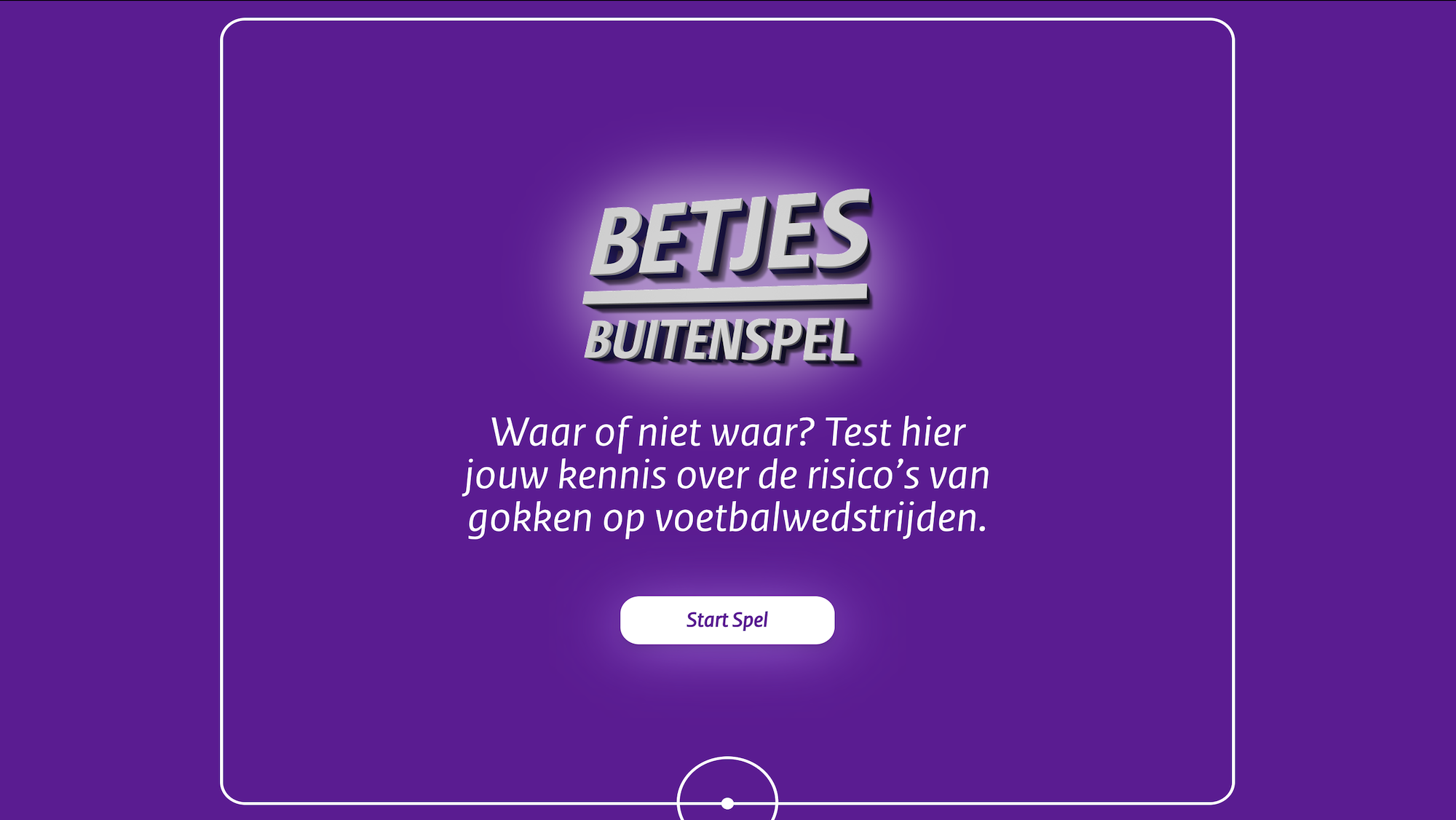 De campagnevideo laat een vriendengroep zien die een wedstrijd beleeft zonder te gokken. Om dit bewustzijn om te zetten in actie is het interactieve platform ‘Betjes Buitenspel’ ontwikkeld. Via social media en betjesbuitenspel.nl kunnen jongeren hun kennis over gokrisico’s testen en leren zij bewuste keuzes maken. De kennistest gaat in op thema’s zoals de invloed van voetbalkennis op de winkans, het gevaar van bonussen en het effect van speellimieten.